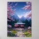 Experience the captivating "Sakura Serenity," where a small, traditional Japanese shrine stands amidst a picturesque landscape. In the foreground, graceful cherry blossom trees frame the scene, while majestic mountains emerge on the distant horizon. Lose yourself in the tranquillity of this serene setting, where the timeless beauty of nature and the sacred embrace of the shrine converge in perfect harmony.