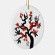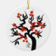 Sakura Tree Chinese Love Symbol custom ornament, featuring two love birds on a blooming sakura cherry tree with hearted-centred flowers and the Chinese love symbol. Personalise it with your text.