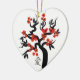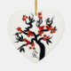Sakura Tree Chinese Love Symbol custom ornament, featuring two love birds on a blooming sakura cherry tree with hearted-centred flowers and the Chinese love symbol. Personalise it with your text.