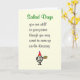 A funny Happy Birthday card, featuring a bad poem and illustration, about "salad days" and salads and dressing. Our character, tillie, is wearing a birthday hat and holding a salad bowl.
