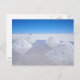 Postcard of drying piles of salt with reflection in the water waiting for the harvest on the Salar the Uyuni salt flats in southern Bolivia.