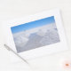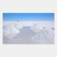Rectangular photo sticker of drying piles of salt with reflection in the water waiting for the harvest on the Salar the Uyuni salt flats in southern Bolivia.