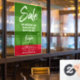 A minimal sale design with "sale" in a rustic modern font and the rest in a simple sans serif font. You can change the colours and upload your logo. Customise with your company information and make it yours. You can change the background colour in the design area.