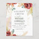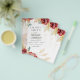 Calling all bohemian brides! This watercolor design is bursting with stunning summer florals in rich burgundy, elegant gold, and calming sage green. Delicate eucalyptus leaves add a touch of rustic charm, creating a truly unforgettable invitation.
