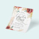 Calling all bohemian brides! This watercolor design is bursting with stunning summer florals in rich burgundy, elegant gold, and calming sage green. Delicate eucalyptus leaves add a touch of rustic charm, creating a truly unforgettable invitation.