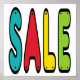 Sale design features large lettering in different colors 'nailed on' to the sign. For a bright and clear 'Sale' sign.