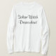 I love this shirt. I had written to the artist asking her if this picture was available on a shirt, and she wrote me back telling me where I could find the shirt. These shirts can be custom made to have a different saying. I loved this saying and went with it. The artist wrote me back later to tell me that she had seen my order go through. How's that for service? Pretty special. It's just as displayed. Perfect!