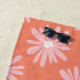 Salmon colour beach towel with bohemian floral daisy pattern and handwritten name which you can easily customise. Bring colour and good vibes to your summer holiday with this retro beach towel.