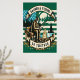 A colourful illustration depicting a fisherman sitting by a campfire with a salmon leaping in the background. The illustration suggests a peaceful, relaxing day spent fishing and enjoying the outdoors.
