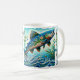 Salmon Jumping Mosaic Floral Blue Green Peach Coffee Mug