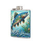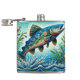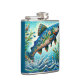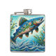 Salmon Jumping Mosaic Floral Blue Green Peach Hip Flask