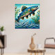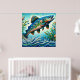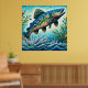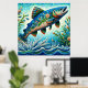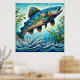 Salmon Jumping Mosaic Floral Blue Green Peach Poster