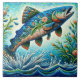 Salmon Jumping Mosaic Floral Blue Green Peach Tile