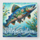 Salmon Jumping Mosaic Floral Blue Personalised Square Wall Clock