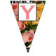 Personalised Pinkish Salmon Text Heirloom Rose Floral Patten Baby Girl Shower Bunting Banner with Black and White Patten under the yellow and pinkish salmon vintage roses Baby Girl or Any Text. Black Floral Pattern with Pink Letters or Change to say anything you want! Make this a Your Text Here Bunting Banner! Any make it unique and truly yours! Perfect with a touch of Pink.
