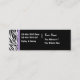 Salon business card design with stylish zebra stripes graphic and modern editable text layout you can customise online. Use these business cards to market and promote yourself in an inexpensive way! Best business cards for themes related to a hair salon, nail salon, hair dresser, or beauty parlour. You could also use this as a fashion business card or trendy designer business card in a handy mini business card format.