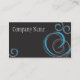 An elegant blue, black and white design. Wisps of curls accompany your information.