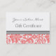 Customisable salon, spa or hairdresser gift certificate in elegant and pretty bright peach orange pink, dark charcoal grey and white classic floral damask pattern. Customise with your own text for a personalised gift certificate for your business. Contact us to request a custom colour or matching products for your company.