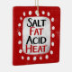 "Salt Fat Acid Heat" is a fun text design with a white accent shape surrounded by white whimsical textured dots.