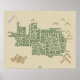 Four-colour typographic map poster of Salt Lake City, Utah neighbourhoods. Satin finish, heavyweight paper.
