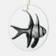 Original fine art design of a black and white Banggai Cardinalfish by artist Carolyn McFann of Two Purring Cats Studio printed on a customisable Christmas ornament for tropical aquarium and saltwater coral reef fish fans.