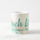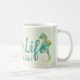 Watercolor dreams of the saltwater beach life: waves sand and shore. Decorated with a floral fantasy seahorse and your personalised text.
