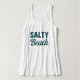 Whether you're salty from the sea breeze, or full of salty attitude, this graphic print 'Salty Beach' scoop neck tank top is for you. The lightly distressed teal vintage and modern fonts create a playful, subtly sarcastic statement. Perfect for anyone who lives in flip flops and a laidback coastal mindset.