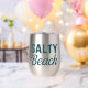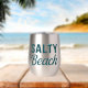 This 'Salty Beach' stainless tumbler features teal blue lightly distressed mixed vintage and modern fonts, creating a playful slogan. Whether you're salty from the sea breeze, or full of salty attitude, this graphic print stemless wine tumbler will serve up a side of beachy sarcasm with your glass of wine.
