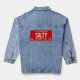 Travel back in time to the year 1969 with this vintage-inspired SALTY license plate design. Bold embossed-style cream text pops on the red contrast. The use of retro-style lettering, realistic screws and Sunshine State slogan keep the vintage vibe realistic. The unique graphic is printed on the back for maximum impact. This eye catching denim jacket is the perfect statement layer for weekend adventures and everyday coastal life.