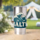 Giant whitecap waves roll toward the beach in this retro style coastal graphic. Cream vintage SALTY text makes a bold contrast against the teal blue ocean. Made for beach bums, surfers, sun seekers and anyone living on island time. This stainless steel tumbler is pure seaside vibes and ocean energy. Insulated to keep your drink as chill as you.