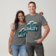 Giant whitecap waves roll toward the beach in this retro style coastal graphic. Cream vintage SALTY text makes a bold contrast against the teal blue ocean. Made for beach bums, surfers, sun seekers and anyone living on island time. This t-shirt is a great way to add seaside vibes to your outfit. | Vivid printing is recommended for non-white garments.