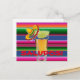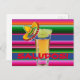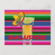 Postcard with image of Mexican Blanket with shot of tequila and lime with sombrero.
