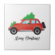 Saluki Driving Christmas Car with Tree on Top Tile