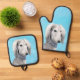 Saluki Painting Silver Feathered Original Dog Art Oven Mitt & Pot Holder Set