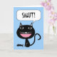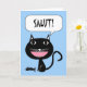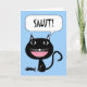 Salut! Hello in French, Black Cat with Fish Bones Card