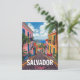 Celebrate the vibrant energy and history of Salvador, Brazil, with this cheerful vintage-style postcard. The design features a steep, cobblestone street lined with brightly colorful colonial buildings and tropical palm trees, leading down to a view of the beautiful bay. This travel poster is reminiscent of the Pelourinho district's charm and is perfect for lovers of Brazilian culture, tropical destinations, and bright, sunny travel art. Ideal for sending greetings, keeping as a colorful souvenir, or framing as stylish wall decor.