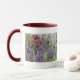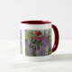 pic of gorgeous purple salvia and burgandy mums on a burgandy ringer mug. STUNNING. 2 sided pics for a view from any angle