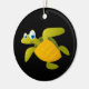 A fun animated looking cartoon sea turtle named Sam. Very colourful in bright yellow and green with a sweet face and big round eyes.