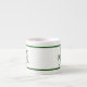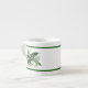 White espresso cup with a vintage 1940s image, on both sides, of delicate white Lilies of the Valley and green borders. See matching candy jar, flask, mug, pitcher, paper plate, shot glass, teapot and coasters. See the entire Mother's Day Mug collection in the FOOD/BEV | Dishes section.