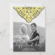 This customisable same love, different date change invitation features a yellow decorative damask element on a grey background. Just add your photo and details to give it a custom feel and voila!