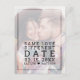 Announce your wedding postponement to your family and friends in style with this modern custom photo save the date postcard. This chic design template features your faded photo on the front with an opaque overlay and cutout frame. The words read "Same Love Different Date" with your new wedding date and your names to personalise. The back of the postcard has more of your wedding details to customise on a dove grey background. Congrats on your engagement and best wishes for your marriage! Designed by artist ©Susan Coffey.