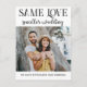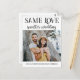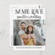 Add one of your favourite pictures to the front of the card, with the wording "Same love, smaller wedding" and "We have downsized our wedding" in black modern fonts.