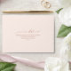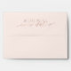Elegant and stylish black and rose gold same plan new date envelope. Blush pink envelope with the envelope flap featuring modern calligraphy in faux gold with the new wedding date. Inside of the envelope is designed with a modern chic faux rose gold texture and the front side customised with the return address.