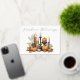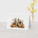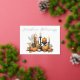 This card features a simple greeting of "Samhain Blessings" with an image of candles and pumpkins. The same image is featured on the inside top of the card, tiled with gold colored pentagrams and triple moon graphics. All of the text, fonts, and background colors may be customized. The images may be adjusted for size and placement.