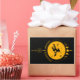 Samhain designs with an orange full moon. Witch on a broom with a cat and jack-o'lantern and bats. Below an orange spiderweb and the text" Samhain Blessings."