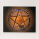A pumpkin and a black cat perch on a reddish-orange chord pentacle to wish everyone a Happy Samhain.