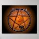 A pumpkin and a black cat perch on a reddish-orange chord pentacle to wish everyone a Happy Samhain.