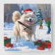 Samoyed Running in Snow with Christmas Hat Square Wall Clock