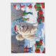 Samoyed Running in Snow with Christmas Hat Tea Towel