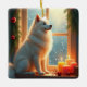 Samoyed Under the Mistletoe Christmas Painting Ceramic Ornament